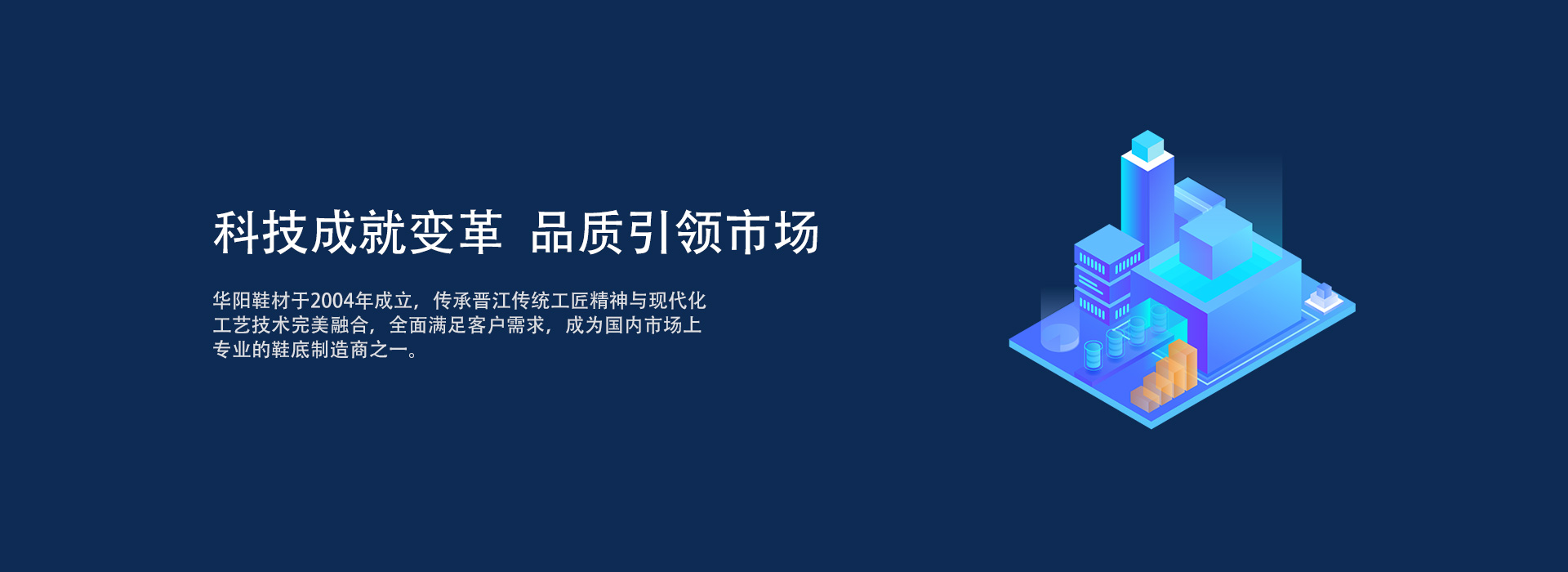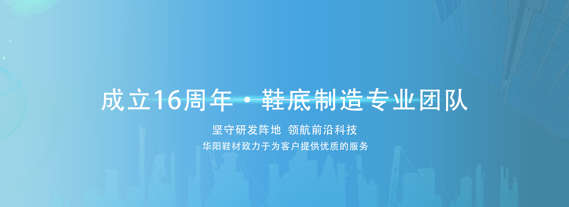 華陽(yáng)鞋材于2004年成立,傳承晉江傳統(tǒng)工匠精神與現(xiàn)代化工藝技術(shù)完美融合,全面滿足客戶需求,成為國(guó)內(nèi)市場(chǎng)上專業(yè)的鞋底制造商之一。多年來,華陽(yáng)鞋材自主研發(fā)及引進(jìn)最先進(jìn)智能生產(chǎn)設(shè)備,致力于生產(chǎn)EVA一次(IP)成型鞋底、EVA二次(MD)成型鞋底、TPR鞋底、RB(橡膠)鞋底,TPU鞋底及配件及底材組合。